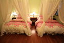 價值68000元、台灣名品豪華羊毛手工針織刺繡 護背彈簧床、再加上價值9980,400織純棉進口 無接縫床單、和價值13800,95/5頂級進口羽絨被 ,房內備有冷氣、有線頻道37吋液晶電視、盥洗 用具、大小毛巾、吹風機、茶包、咖啡包、礦泉 水、宵夜、網路線。 |